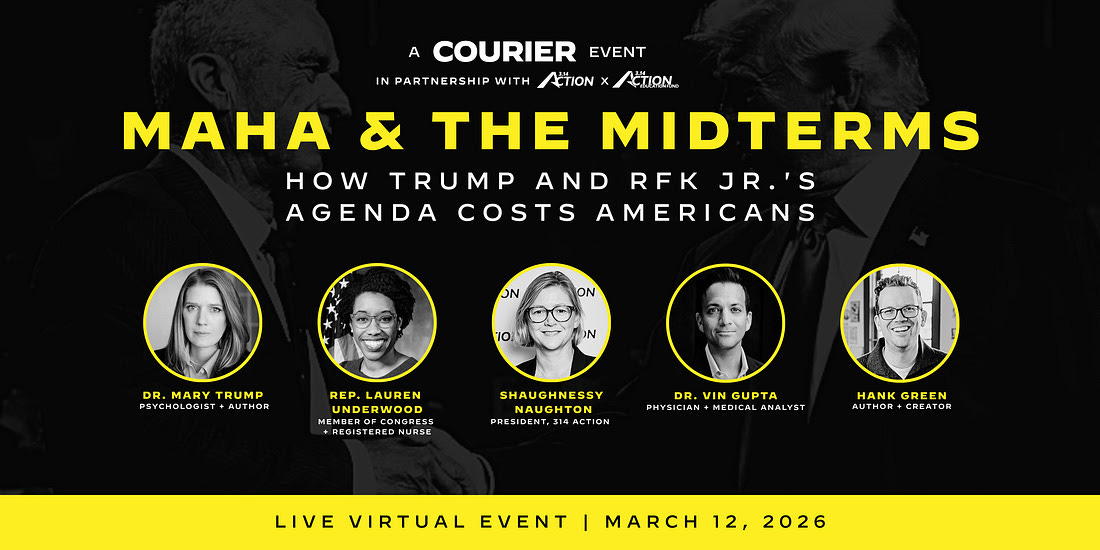 Don’t miss MAHA & the Midterms: How Trump and RFK Jr.’s Agenda Costs Americans, a live conversation from COURIER and 3.14 Action. This event will break down how political choices are reshaping healthcare access ahead of the midterms and show what’s at stake for families across the country.