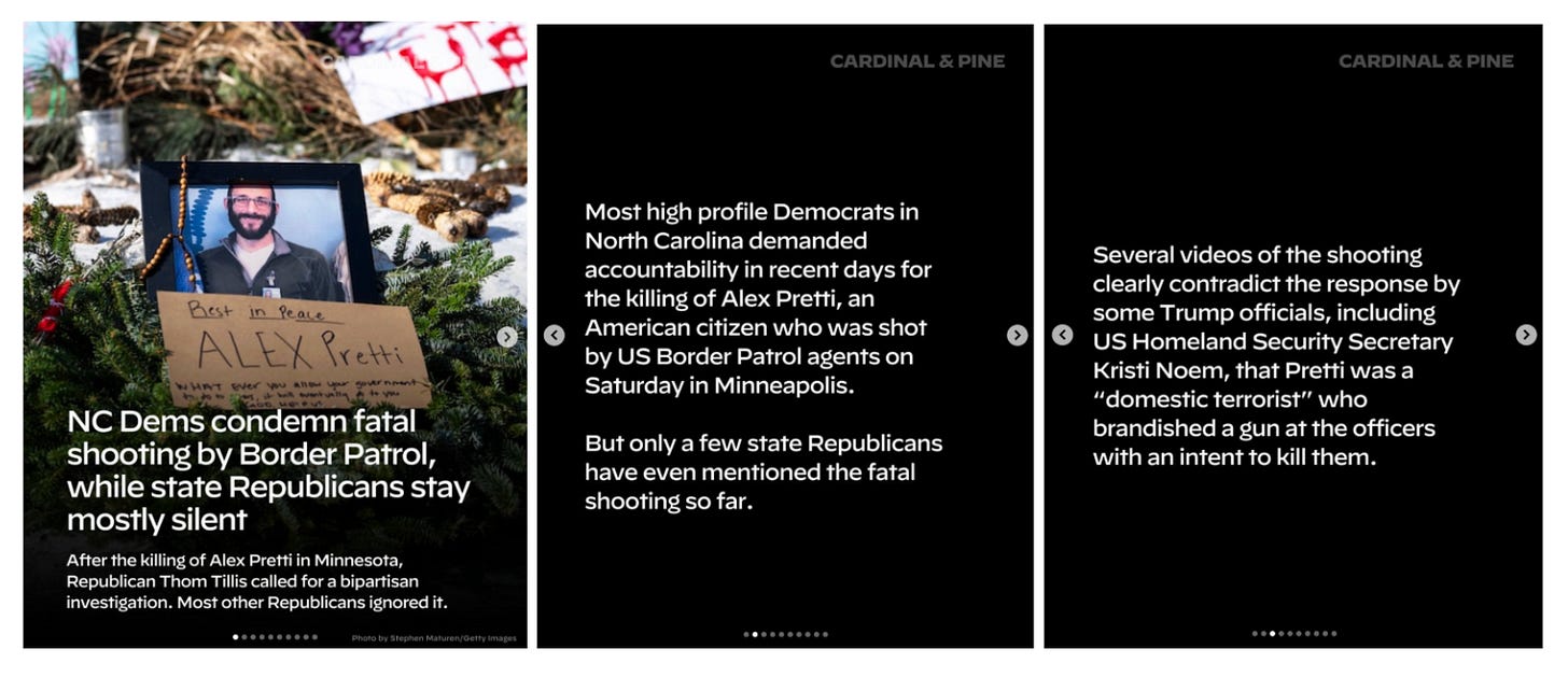 Amid the growing outcry over the shooting of Alex Pretti, Republican Thom Tillis called for a bipartisan investigation, but most other NC Republicans seemed to ignore it. COURIER’s Cardinal and Pine shares the details.