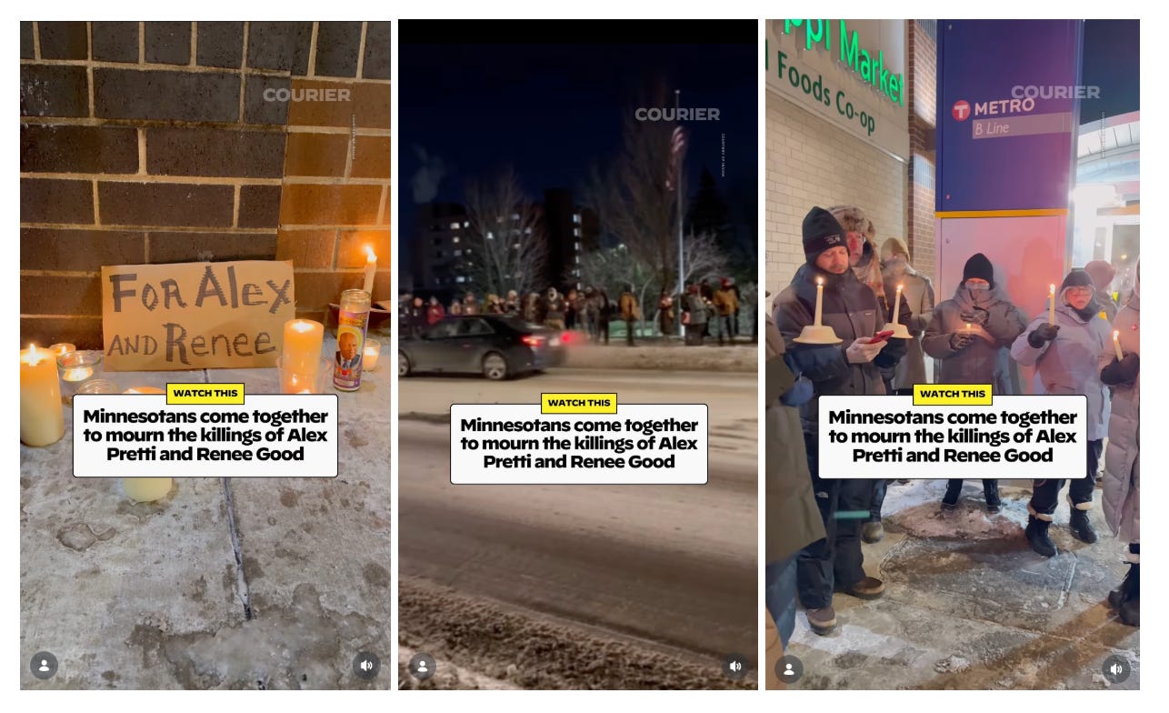 Thousands of Minnesotans gathered across several vigils in Minneapolis on Saturday. COURIER has video capturing the community coming together amid the tragic deaths of Alex Pretti and Renee Good.