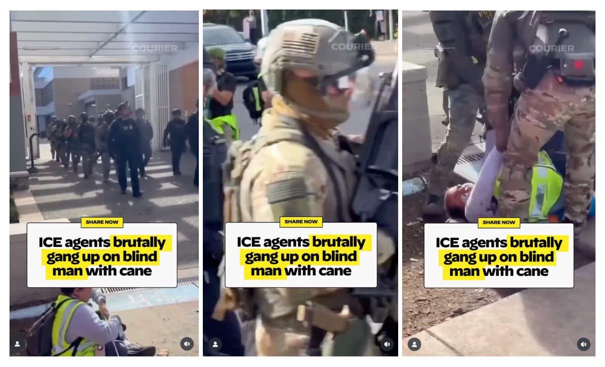 ICE agents brutally gang up on a blind man with a cane in South Portland