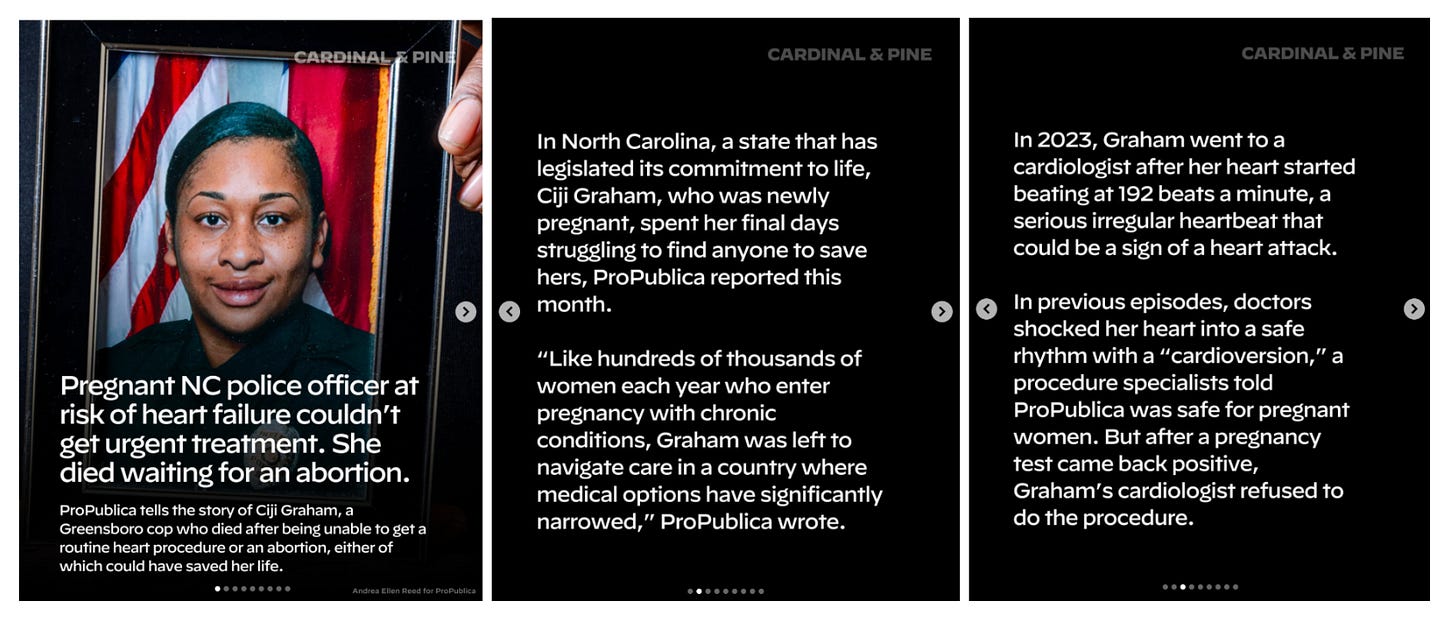 CiJi Graham, a Greensboro police officer, was refused treatment for potential heart failure and sent home after a pregnancy test came back positive. COURIER’s Cardinal and Pine shares the story.