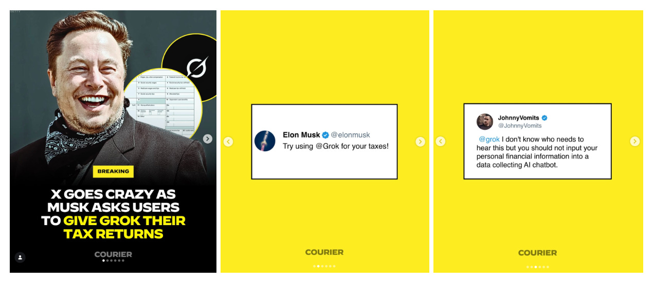 Elon Musk suggested that people should use Grok to submit their tax returns this tax season — but X users quickly pointed out how risky that could be. COURIER rounded up some of the best responses to Elon’s post.