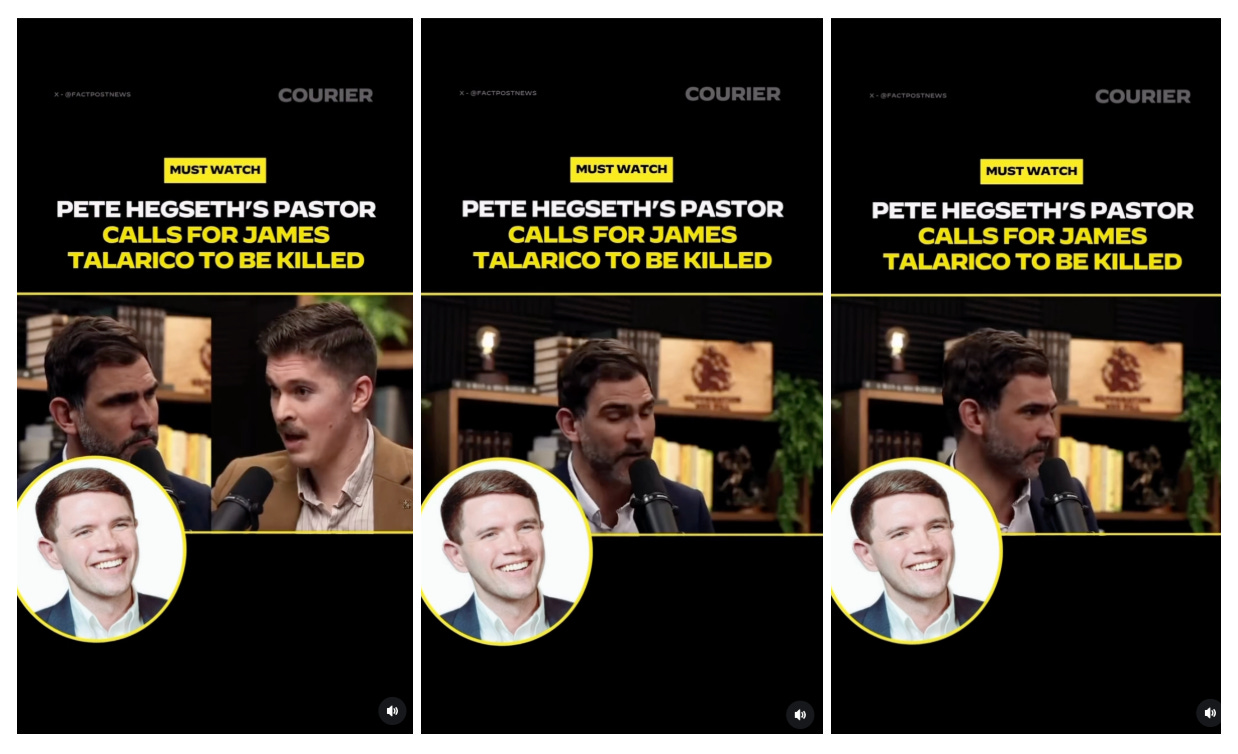 The Secretary of War’s spiritual advisor said that he prayed for God to kill Democrat James Talarico. Talarico responded: “You may pray for my death, Pastor, but I still love you.” COURIER shared the video.