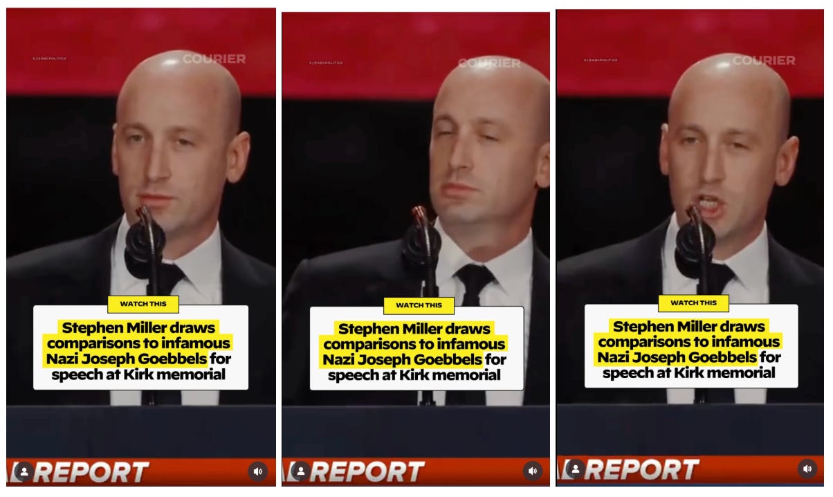 Trump’s Stephen Miller came under fire for his speech at Charlie Kirk’s memorial service, drawing comparisons to infamous Nazi Joseph Goebbel’s speech entitled, “The Storm is Coming.” COURIER has the video.