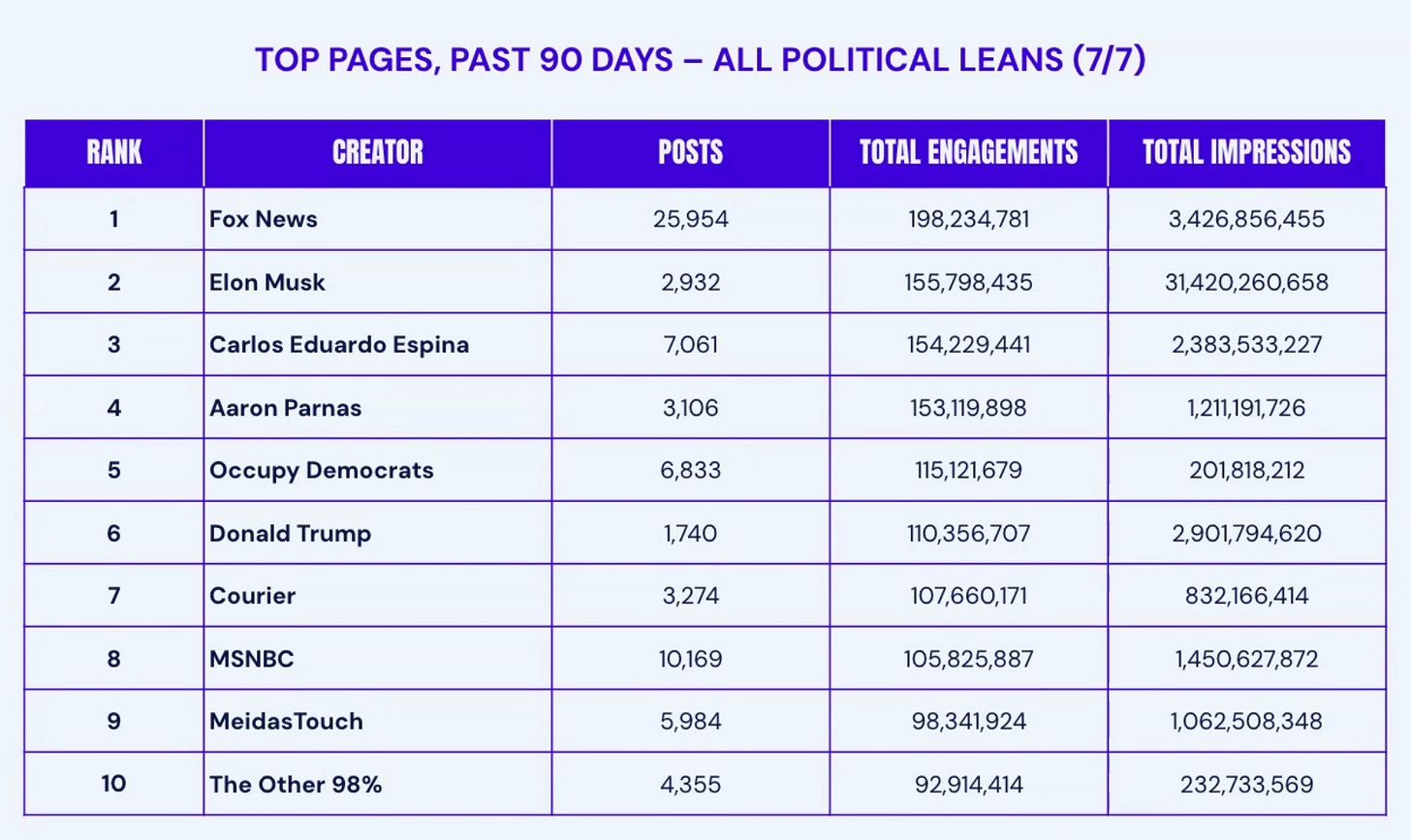 COURIER was ranked #7 in a round up from Center for American Progress listing the top 10 most influential pages in the political space. Notably, COURIER outperformed MSNBC despite having significantly fewer followers across platforms.