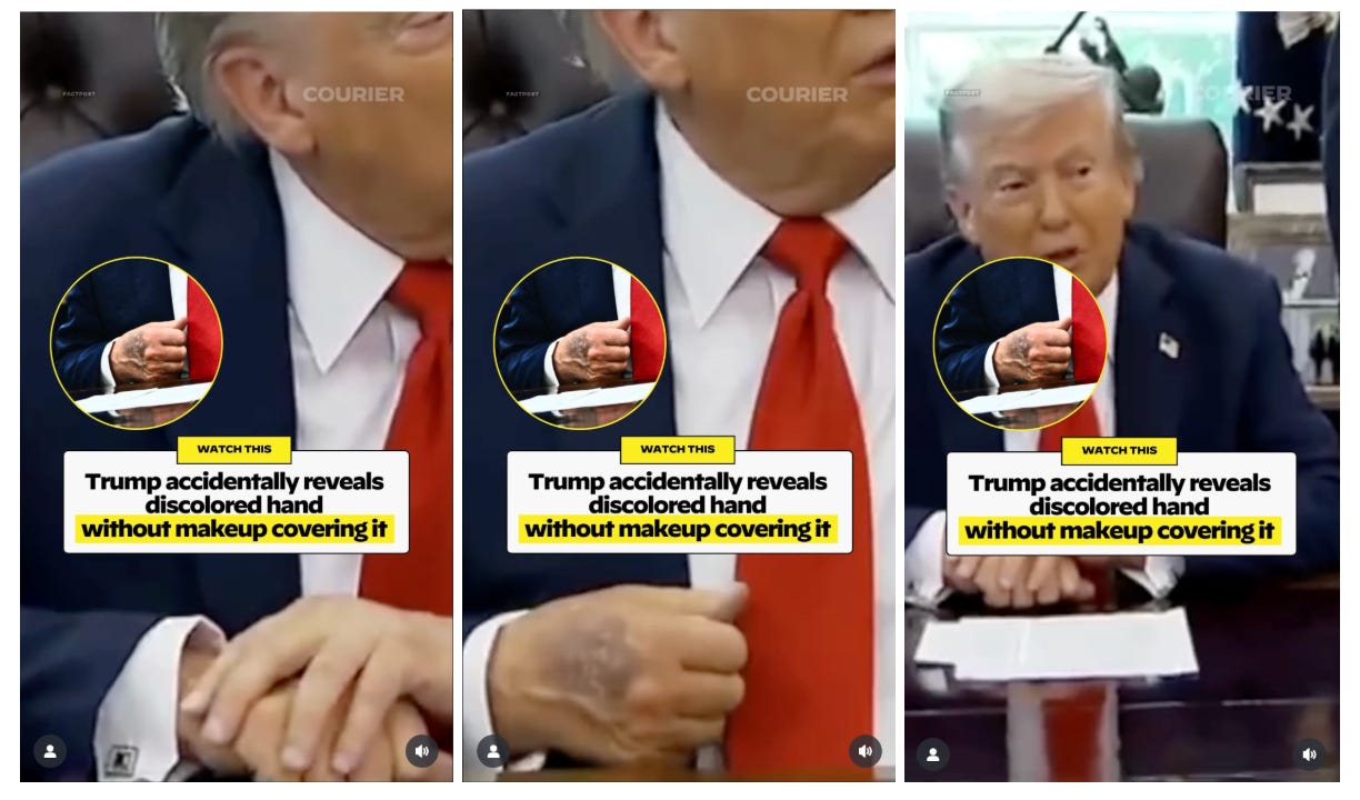 Trump accidentally reveals discolored hand without makeup covering it