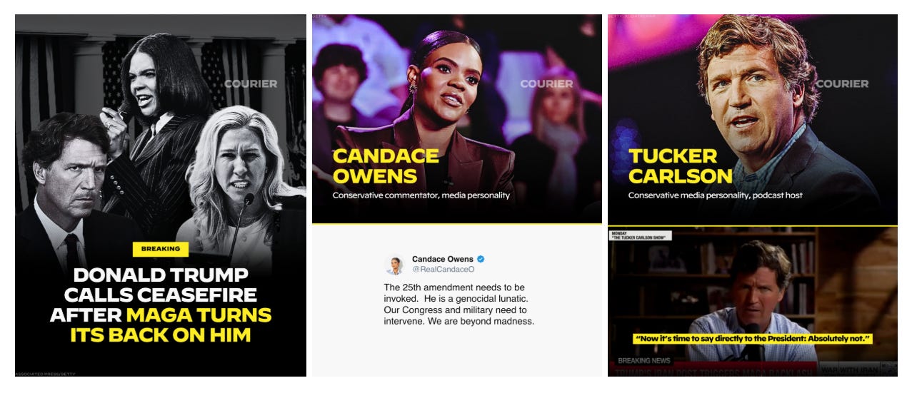 Trump frantically called for a two-week ceasefire with Iran after facing backlash from major MAGA figures such as Alex Jones, Marjorie Taylor Greene, and Joe Rogan. COURIER has the roundup.