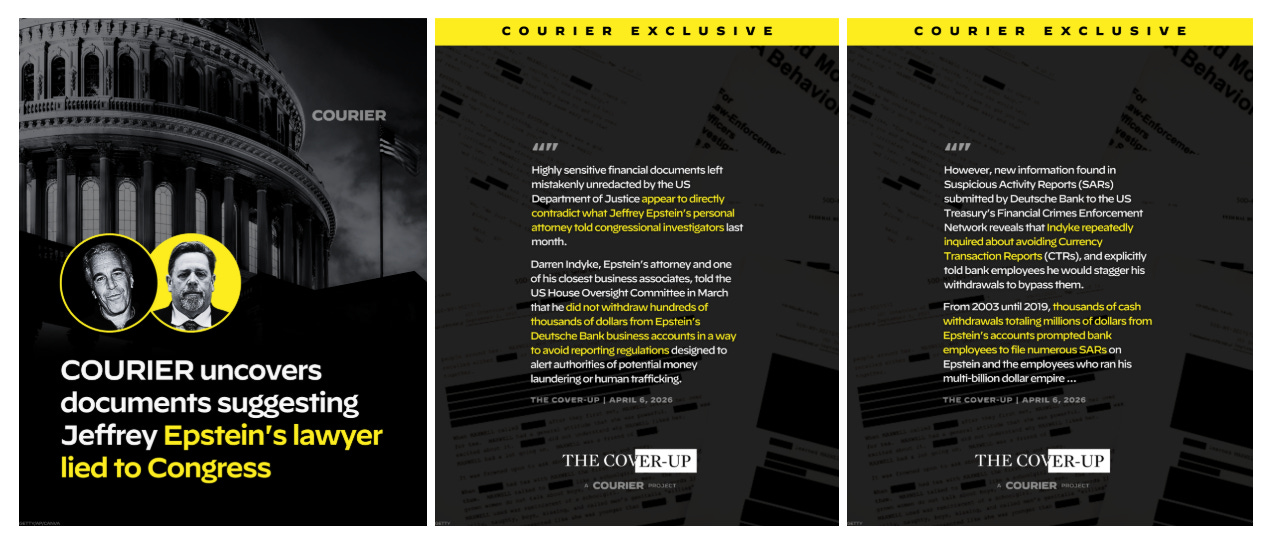 We’re so excited to announce our latest project here at COURIER: The Cover-Up. For too long, the Epstein Class has dealt in wealth, power, and politics to avoid accountability — but the American public deserves the truth.
