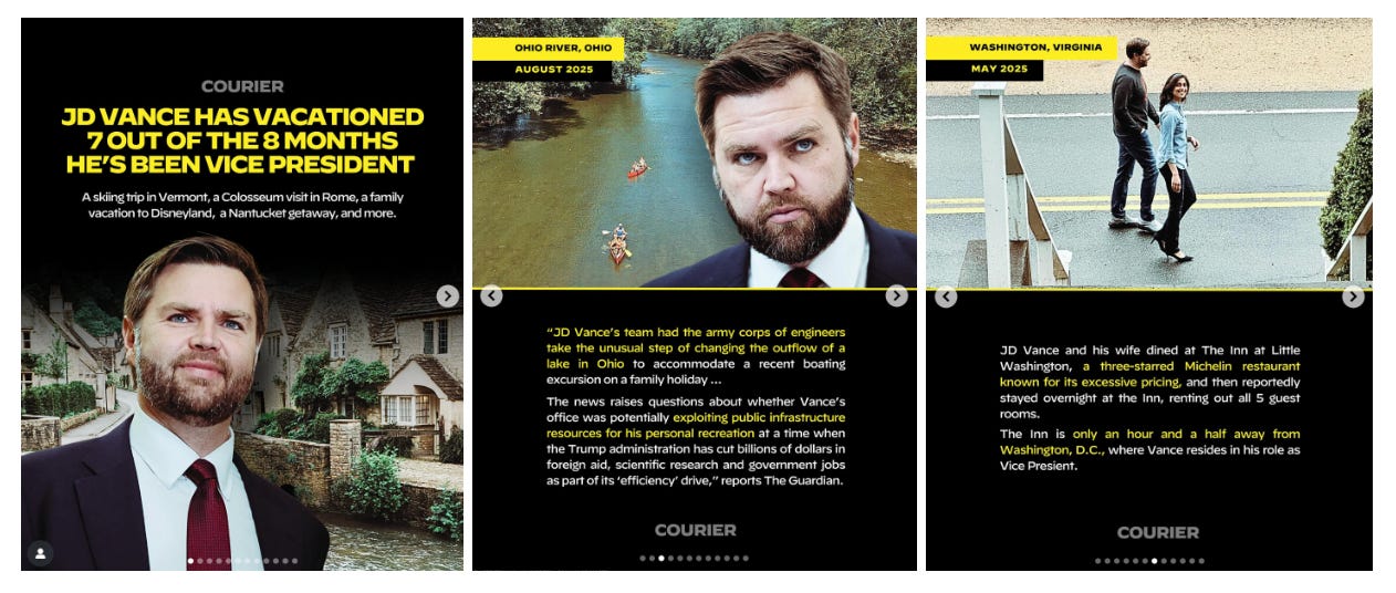 JD Vance has vacationed for 7 out of his 8 months in office, traveling to Disneyland, Rome, and India (just to name a few of the places) with his family. COURIER did a deep dive into the Vice President’s recent vacations.